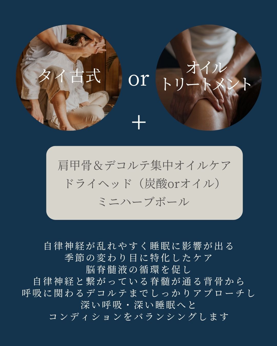 【秋季限定メニュー】深眠ケア120分 -眠りの浅さ、自律神経の乱れに—