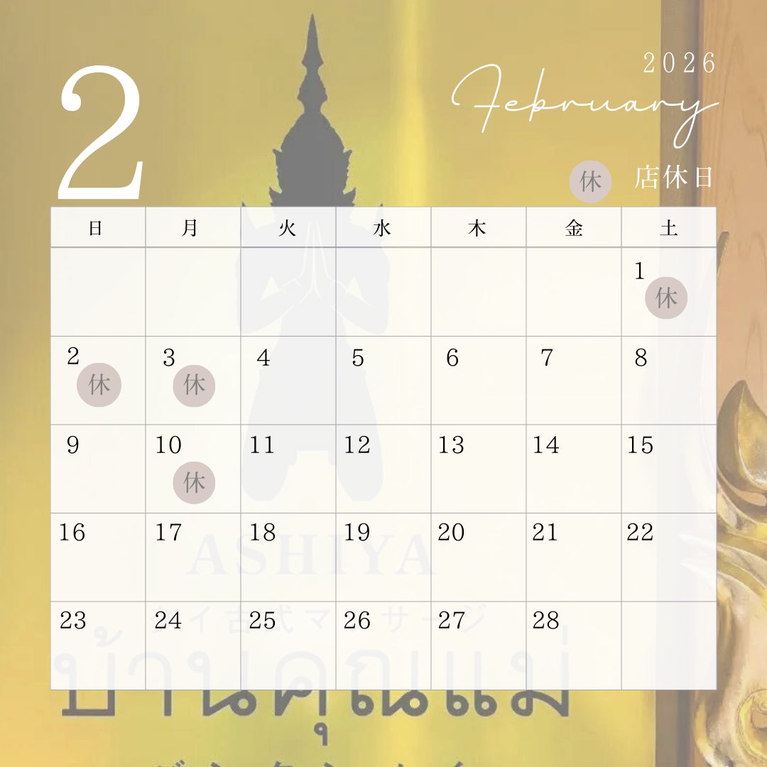 2月の店休日はこちらになります。
